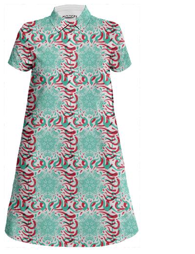 Sporty a-line collared mini dress with short sleeves a 5-button front placket and side seam pockets.