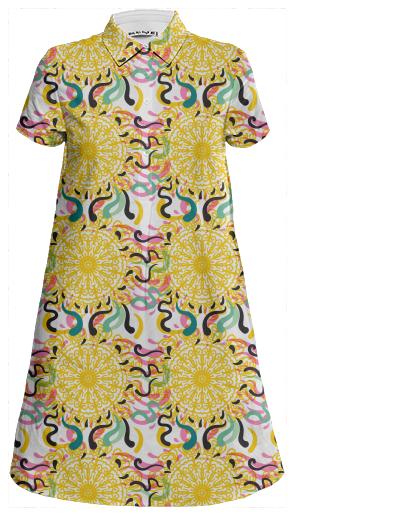 Sporty a-line collared mini dress with short sleeves a 5-button front placket and side seam pockets.