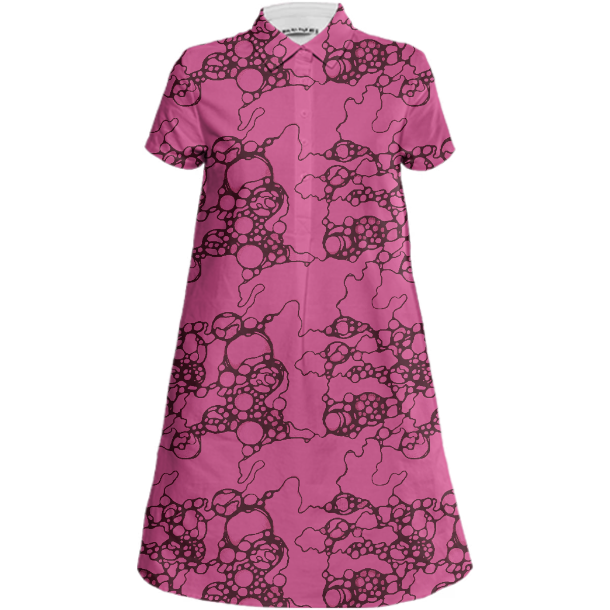 Sporty a-line collared mini dress with short sleeves a 5-button front placket and side seam pockets.