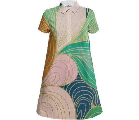 Sporty a-line collared mini dress with short sleeves a 5-button front placket and side seam pockets.