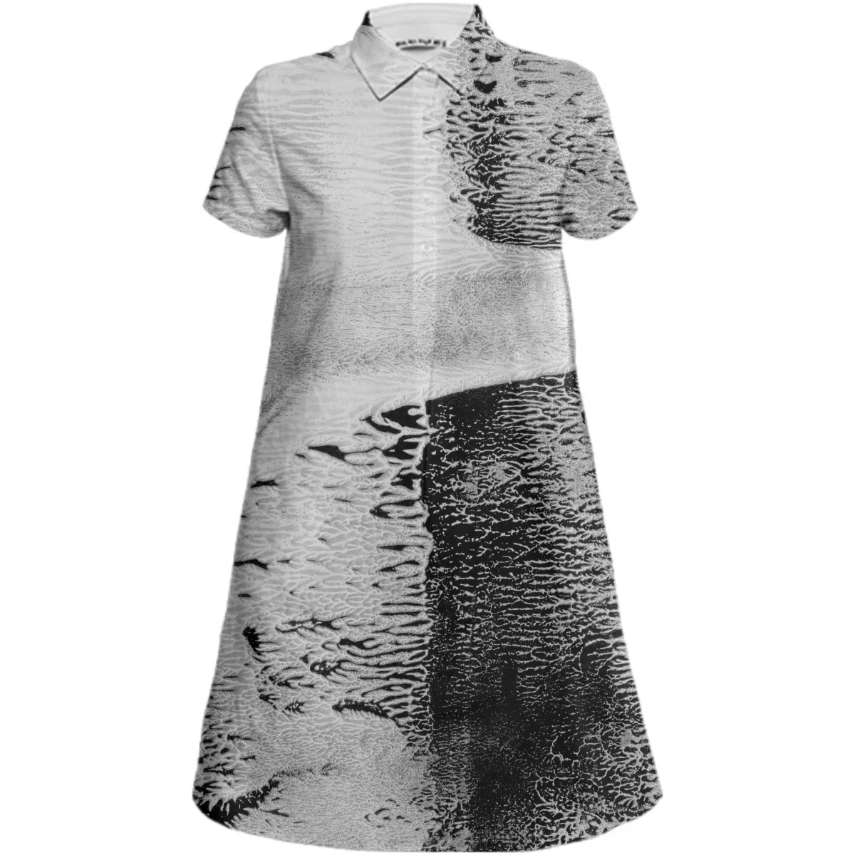 Sporty a-line collared mini dress with short sleeves a 5-button front placket and side seam pockets.