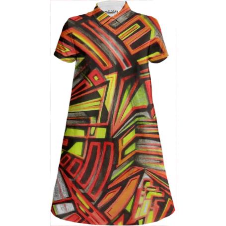 Sporty a-line collared mini dress with short sleeves a 5-button front placket and side seam pockets.