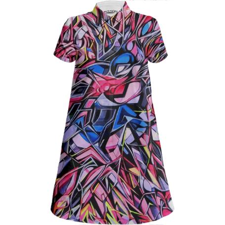 Sporty a-line collared mini dress with short sleeves a 5-button front placket and side seam pockets.