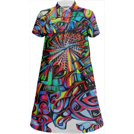Sporty a-line collared mini dress with short sleeves a 5-button front placket and side seam pockets.