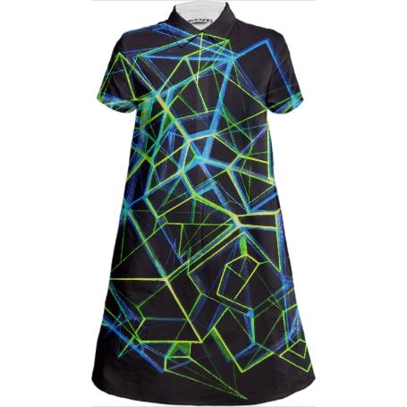 Sporty a-line collared mini dress with short sleeves a 5-button front placket and side seam pockets.