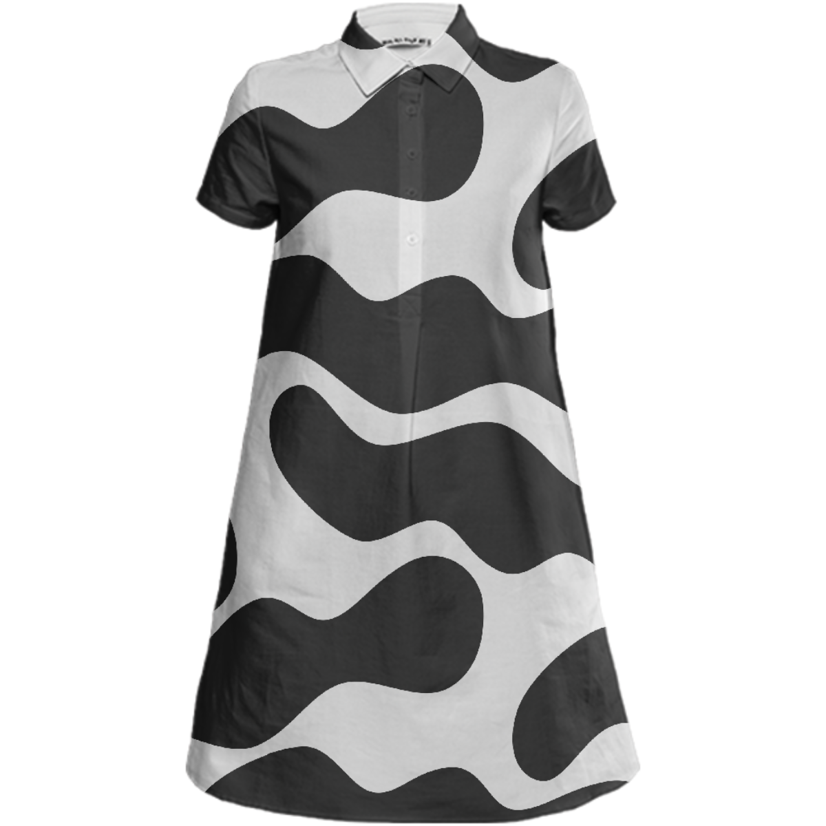 Sporty a-line collared mini dress with short sleeves a 5-button front placket and side seam pockets.