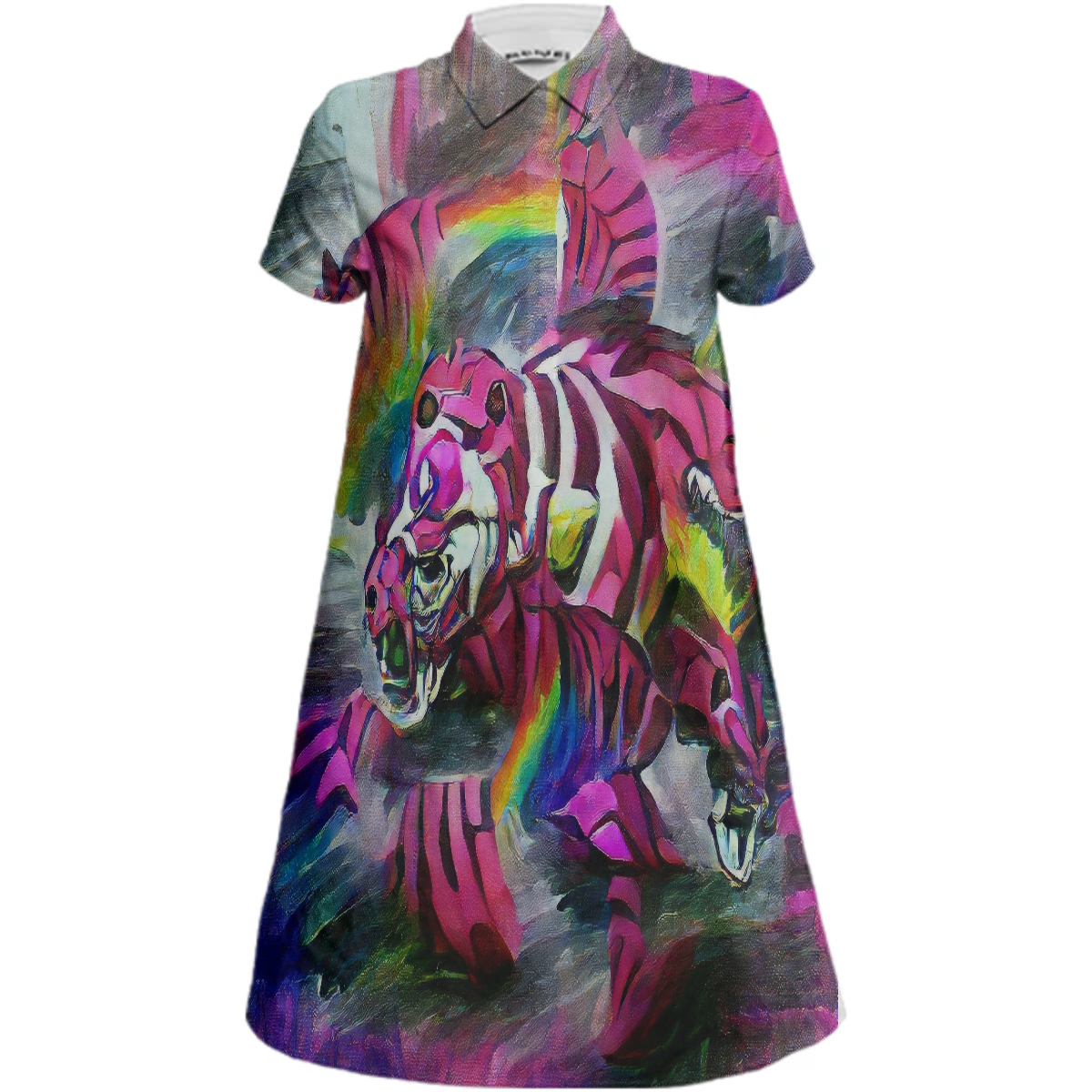 Sporty a-line collared mini dress with short sleeves a 5-button front placket and side seam pockets.