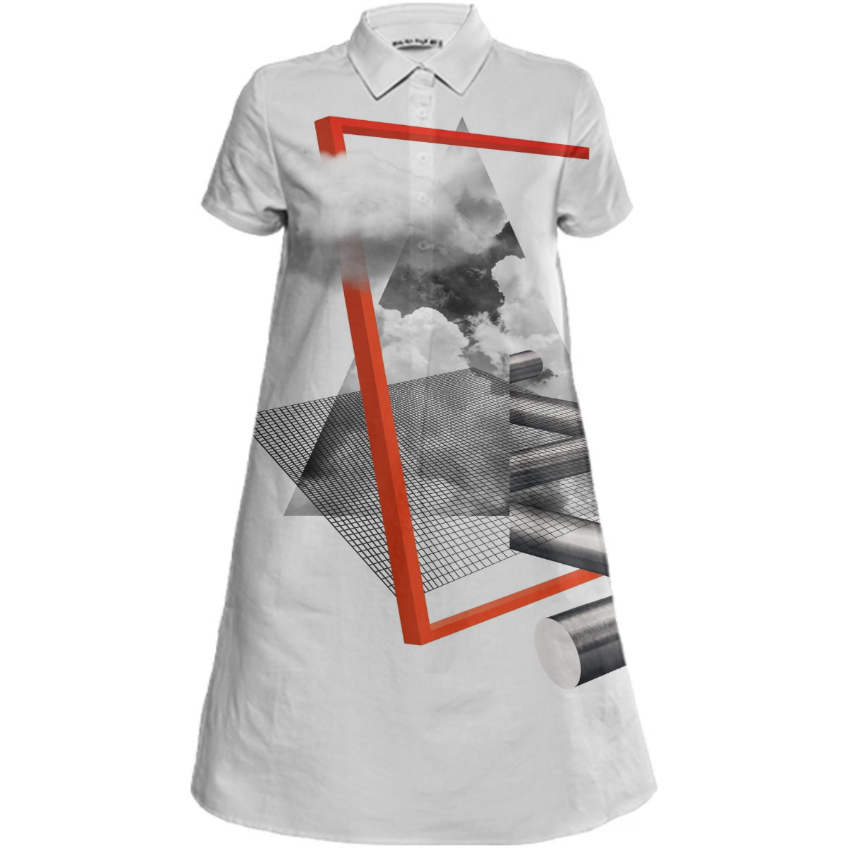 Sporty a-line collared mini dress with short sleeves a 5-button front placket and side seam pockets.