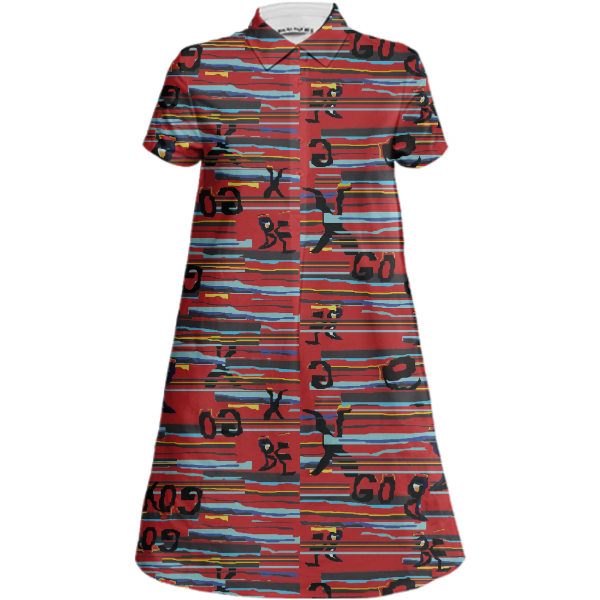 Sporty a-line collared mini dress with short sleeves a 5-button front placket and side seam pockets.