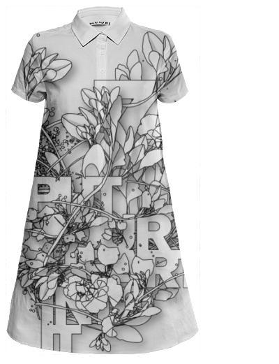 Sporty a-line collared mini dress with short sleeves a 5-button front placket and side seam pockets.