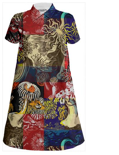 Vintage Botanical Bright Abstract Shirt Dress