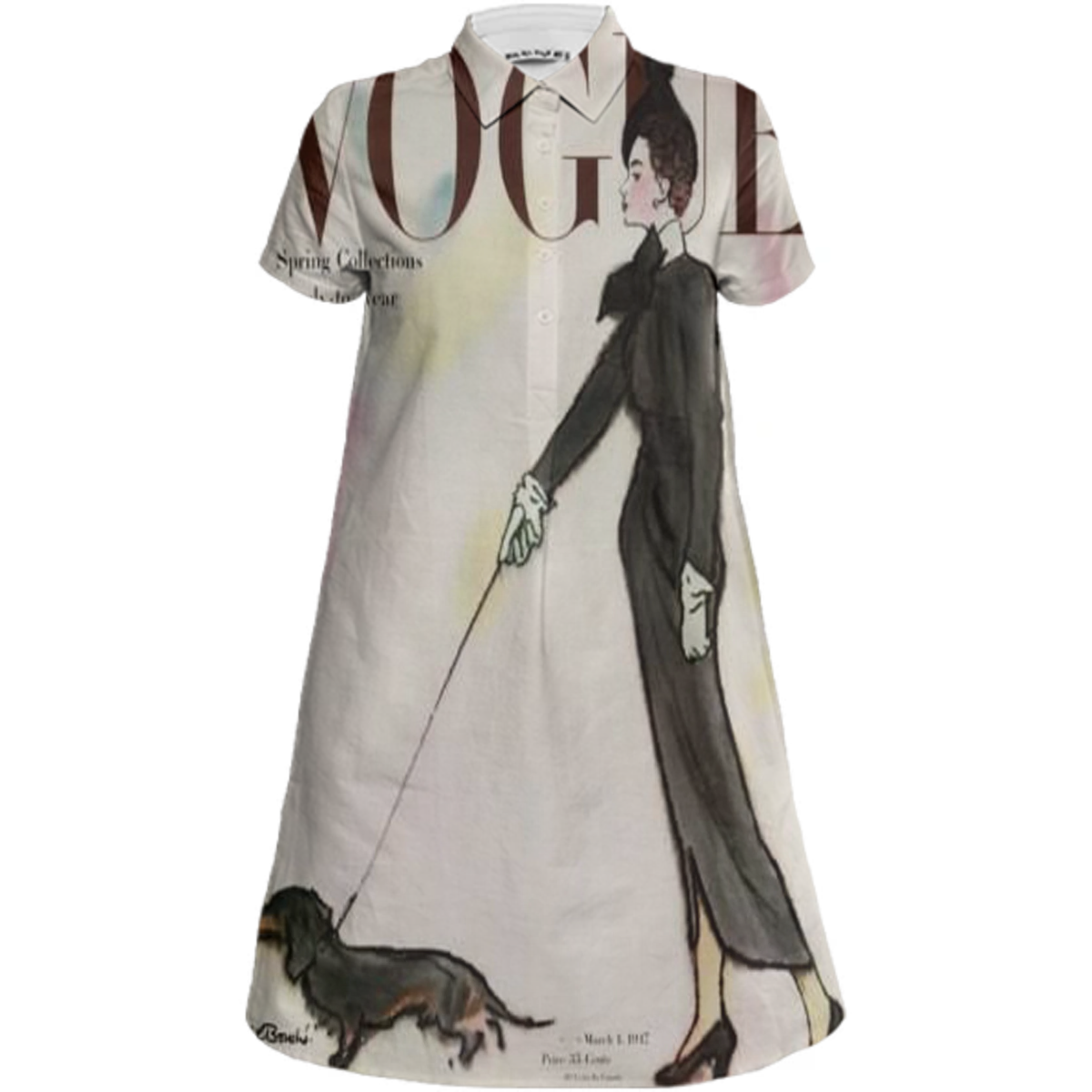 Sporty a-line collared mini dress with short sleeves a 5-button front placket and side seam pockets.