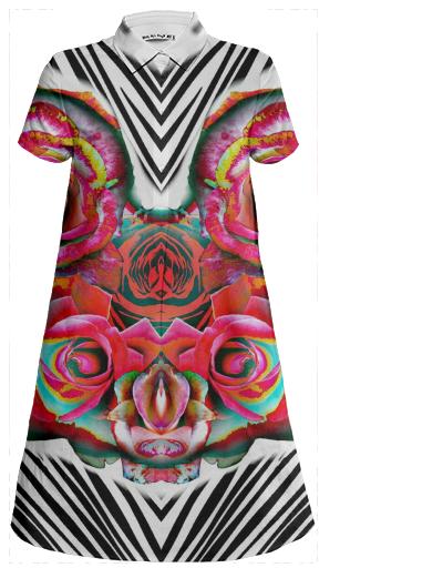 Sporty a-line collared mini dress with short sleeves a 5-button front placket and side seam pockets.