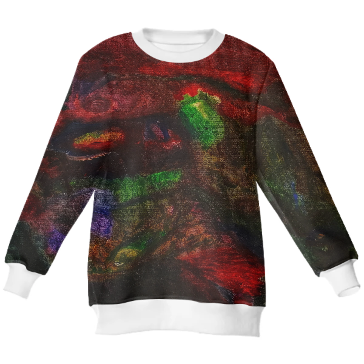 Bulky fitting neoprene sweatshirt with solid black or white neck cuff and waistband ribbing.