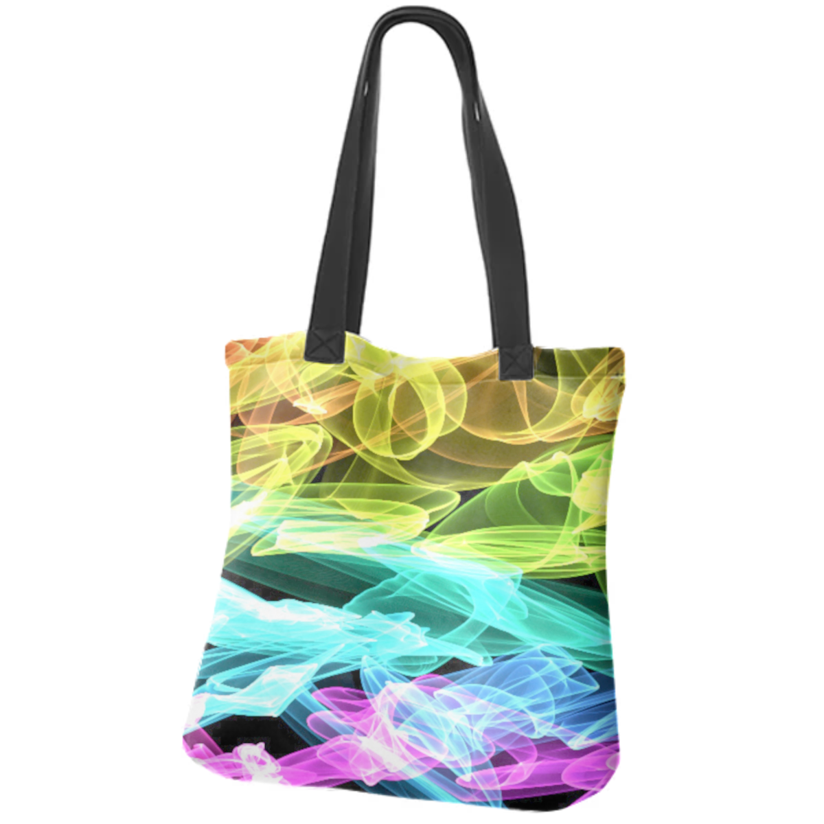 The neoprene tote bag has a structured shape withyour choice of black or white nylon webbing straps.