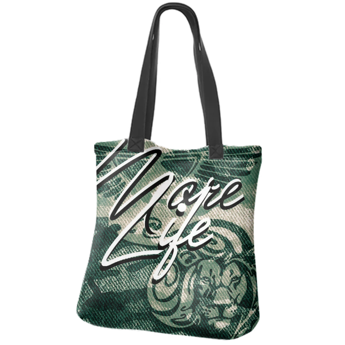 The neoprene tote bag has a structured shape withyour choice of black or white nylon webbing straps.