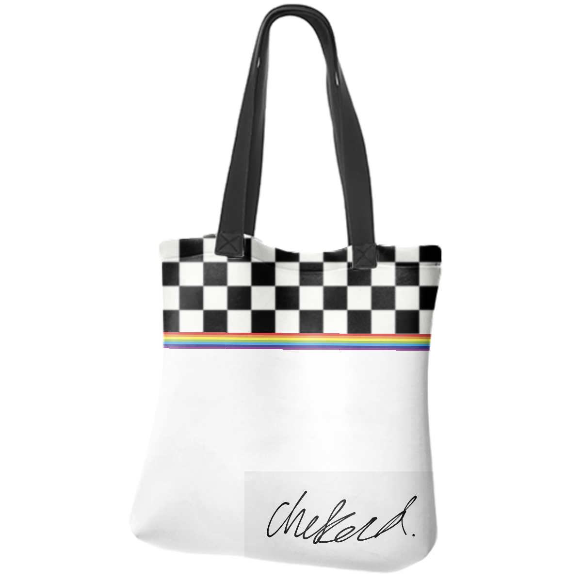The neoprene tote bag has a structured shape withyour choice of black or white nylon webbing straps.