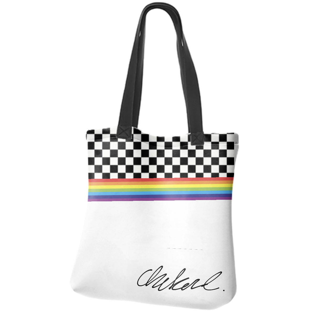 The neoprene tote bag has a structured shape withyour choice of black or white nylon webbing straps.