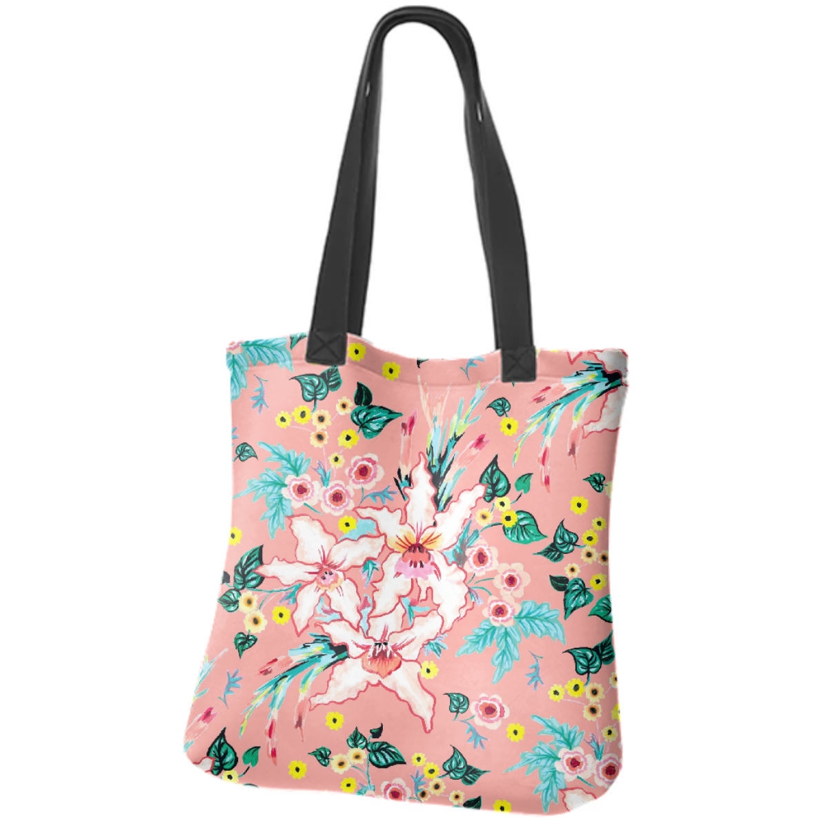 The neoprene tote bag has a structured shape withyour choice of black or white nylon webbing straps.