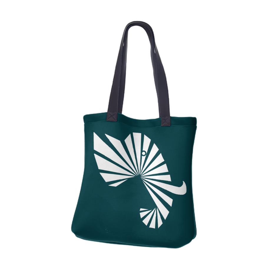 The neoprene tote bag has a structured shape withyour choice of black or white nylon webbing straps.