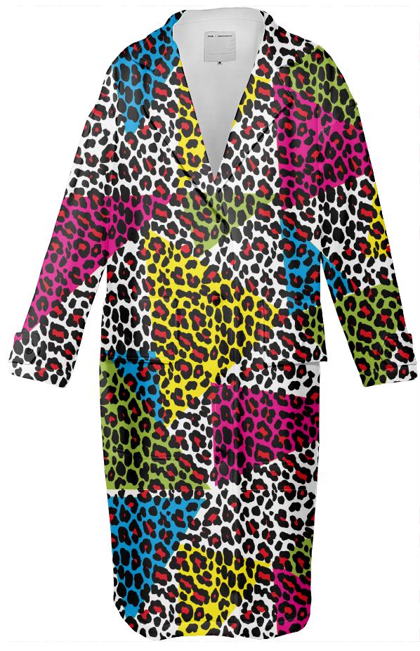 Loose fitting knee/calf length neoprene trench coat with plastic buttons up the front two front welt flap pockets and decorative buttoned strap details at the cuffs.