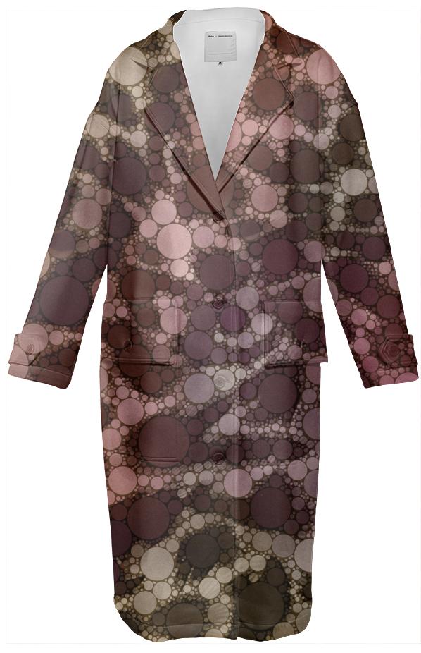 Loose fitting knee/calf length neoprene trench coat with plastic buttons up the front two front welt flap pockets and decorative buttoned strap details at the cuffs.