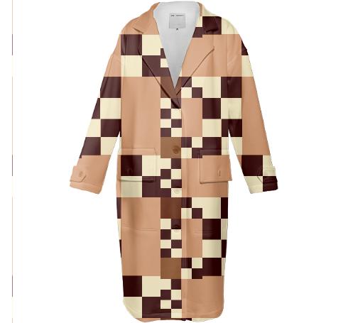 Loose fitting knee/calf length neoprene trench coat with plastic buttons up the front two front welt flap pockets and decorative buttoned strap details at the cuffs.