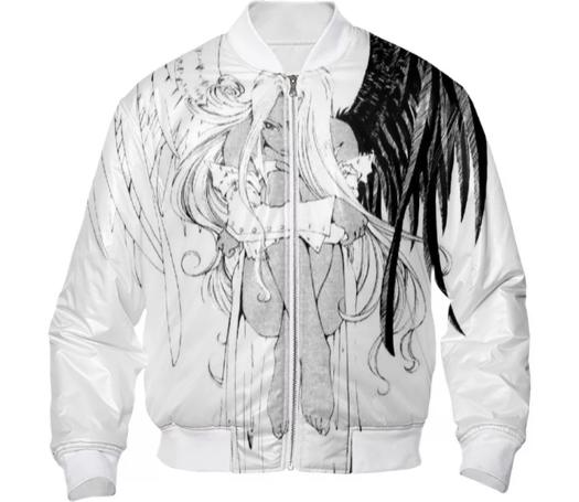 Light weight bombr jacket with your choice of white or black ribbing slight padding zip up front and side pockets. The inside is adorned with PAOM straps for swinging over your shoulders so you dont have to hold it.