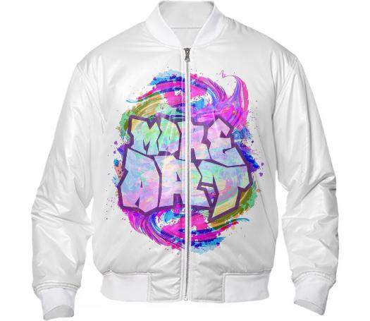 Light weight bombr jacket with your choice of white or black ribbing slight padding zip up front and side pockets. The inside is adorned with PAOM straps for swinging over your shoulders so you dont have to hold it.