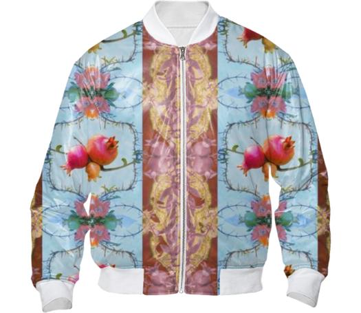 Light weight bombr jacket with your choice of white or black ribbing slight padding zip up front and side pockets. The inside is adorned with PAOM straps for swinging over your shoulders so you dont have to hold it.