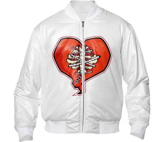 Light weight bombr jacket with your choice of white or black ribbing slight padding zip up front and side pockets. The inside is adorned with PAOM straps for swinging over your shoulders so you dont have to hold it.