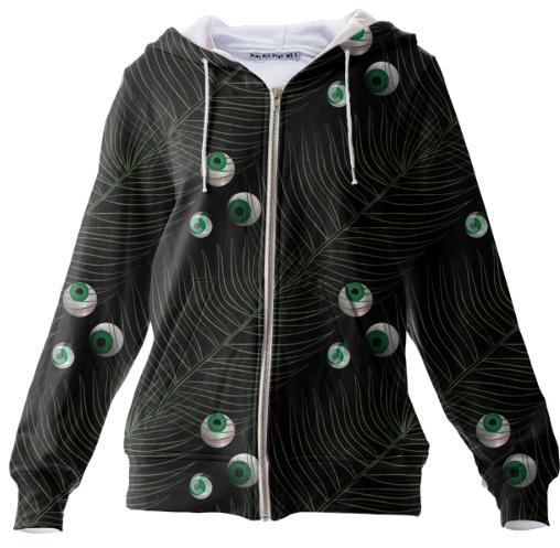 Slim fitting zip up hoodie with front kangaroo pockets metal zipper and drawstring hood.