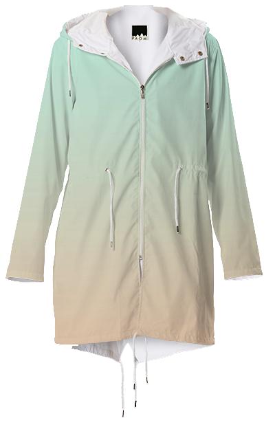Light weight water resistant raincoat meant for easy layering in all sorts of rainy climates. Features waist & bottom hem drawstrings for definition and a double snap hood to protect against wind & rain.