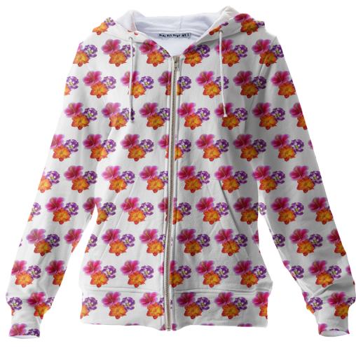 Slim fitting zip up hoodie with front kangaroo pockets metal zipper and drawstring hood.