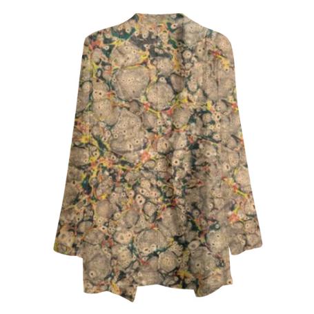 Designed by Gabriel Held this loose fit chiffon blazer features plastic buttons down the front two front flap pockets and a welt left breast pocket. Made with two layers of printed chiffon.