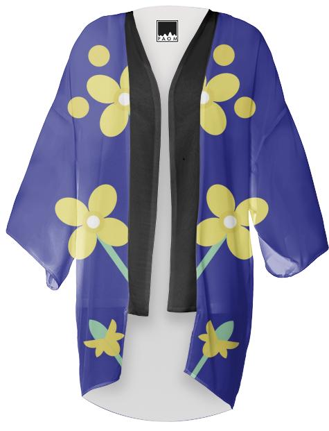 Flowy chiffon kimono falls nicely at mid thigh. Great for layering or using as a beach cover up.