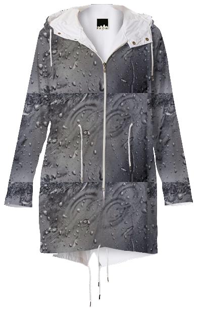 Light weight water resistant raincoat meant for easy layering in all sorts of rainy climates. Features waist & bottom hem drawstrings for definition and a double snap hood to protect against wind & rain.