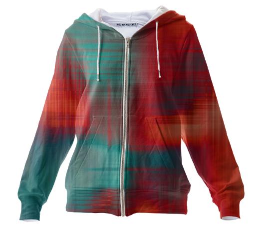 Slim fitting zip up hoodie with front kangaroo pockets metal zipper and drawstring hood.