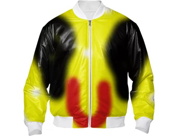Light weight bombr jacket with your choice of white or black ribbing slight padding zip up front and side pockets. The inside is adorned with PAOM straps for swinging over your shoulders so you dont have to hold it.