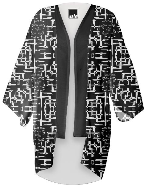 Flowy chiffon kimono falls nicely at mid thigh. Great for layering or using as a beach cover up.
