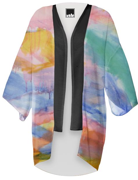 Flowy chiffon kimono falls nicely at mid thigh. Great for layering or using as a beach cover up.