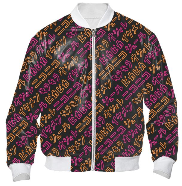 Light weight bombr jacket with your choice of white or black ribbing slight padding zip up front and side pockets. The inside is adorned with PAOM straps for swinging over your shoulders so you dont have to hold it.