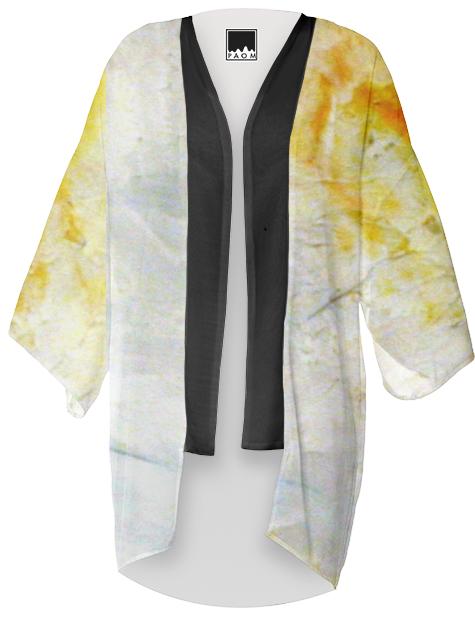 Flowy chiffon kimono falls nicely at mid thigh. Great for layering or using as a beach cover up.