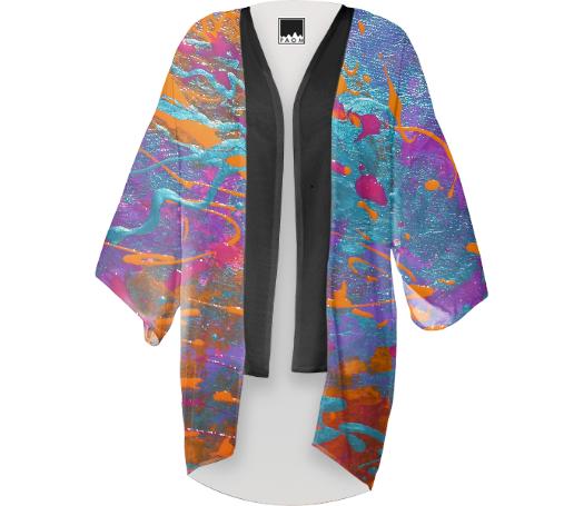 Flowy chiffon kimono falls nicely at mid thigh. Great for layering or using as a beach cover up.