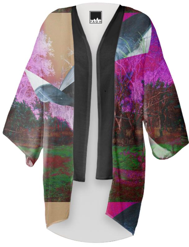 Flowy chiffon kimono falls nicely at mid thigh. Great for layering or using as a beach cover up.