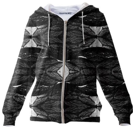 Slim fitting zip up hoodie with front kangaroo pockets metal zipper and drawstring hood.