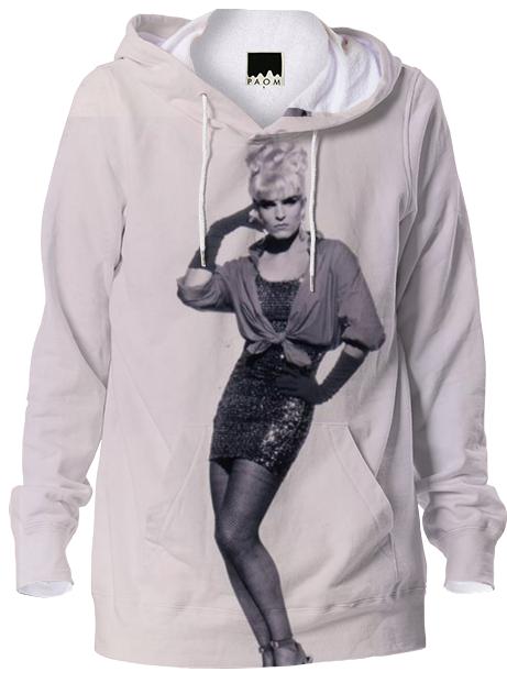 Slim fitting pullover hoodie with front kangaroo pocket and drawstring hood.