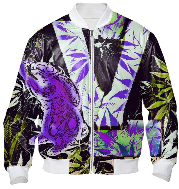 Light weight bombr jacket with your choice of white or black ribbing slight padding zip up front and side pockets. The inside is adorned with PAOM straps for swinging over your shoulders so you dont have to hold it.