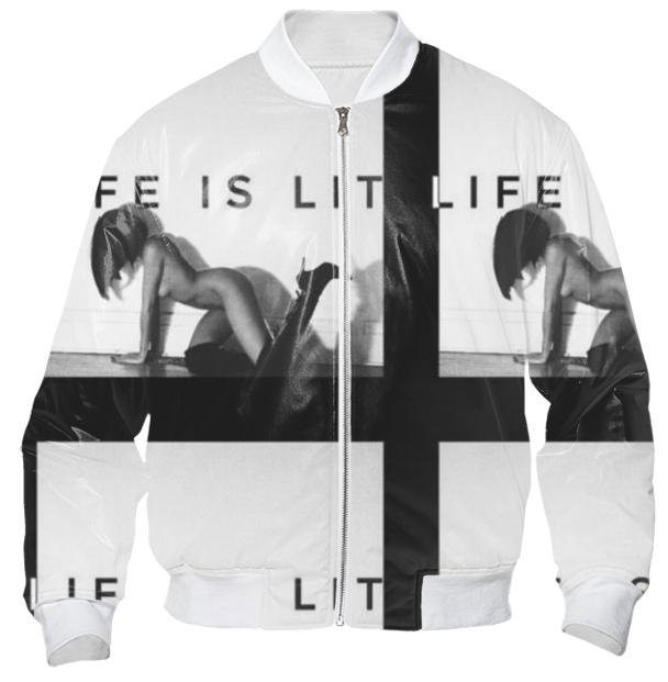 Light weight bombr jacket with your choice of white or black ribbing slight padding zip up front and side pockets. The inside is adorned with PAOM straps for swinging over your shoulders so you dont have to hold it.