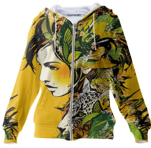 Slim fitting zip up hoodie with front kangaroo pockets metal zipper and drawstring hood.